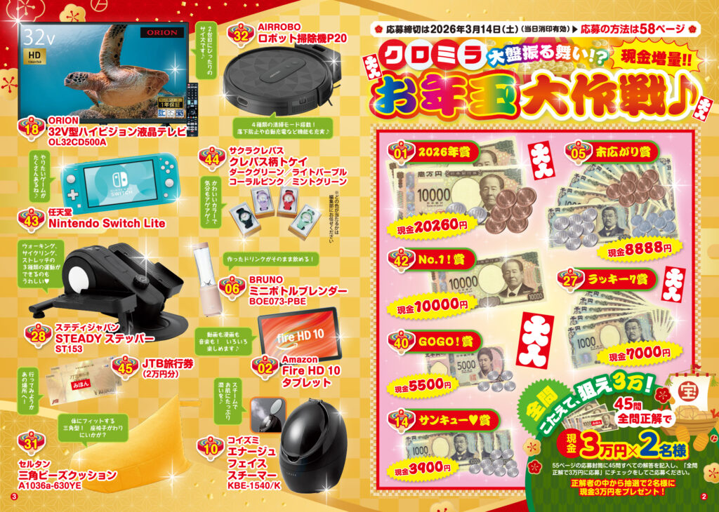 - 懸賞クロスワードミラクル 2月、5月、8月、11月の15日以降発売